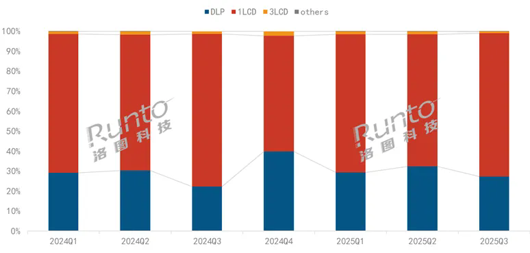 2024-2025Q3 中国智能投影线上市场分技术销量结构