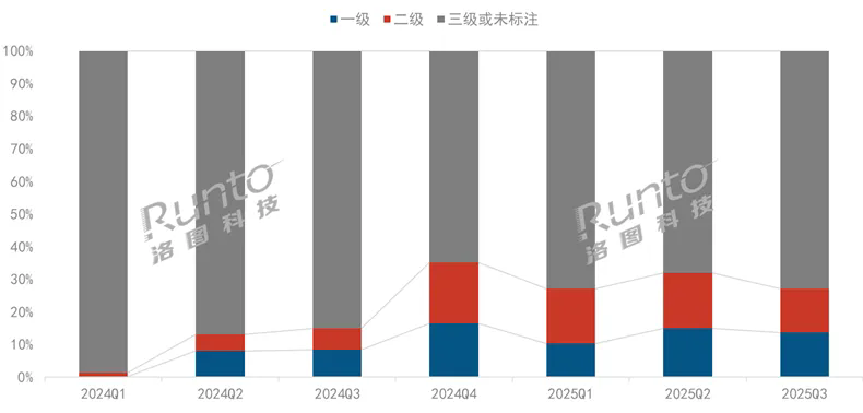 2024-2025Q3 中国智能投影线上市场分能效等级销量份额